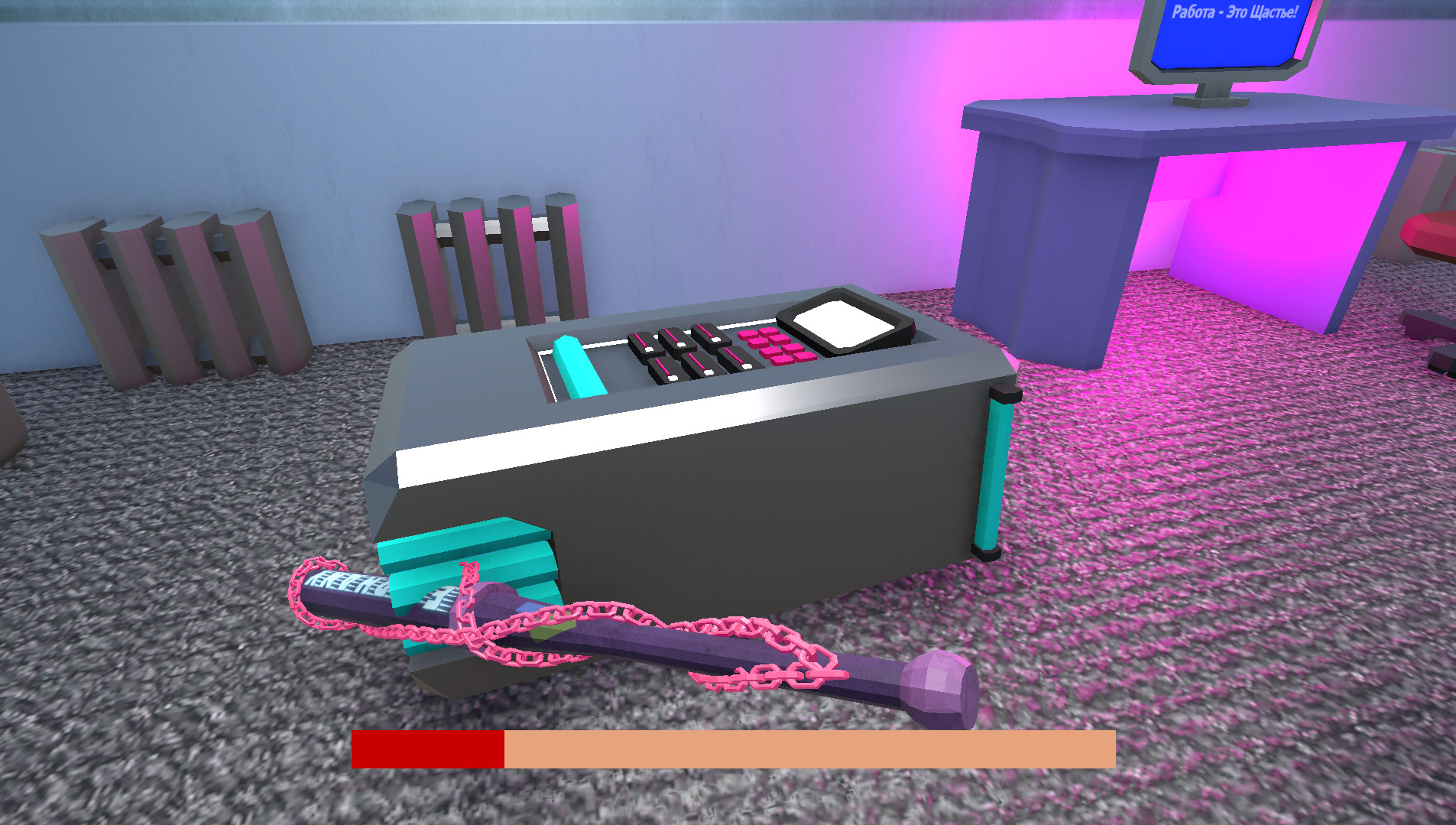 In this game, you must eliminate all objects blocking your path forward. The player cannot proceed until they smash the required object. These objects emit a distinctive sound and are highlighted with a purple glow until struck by the player.